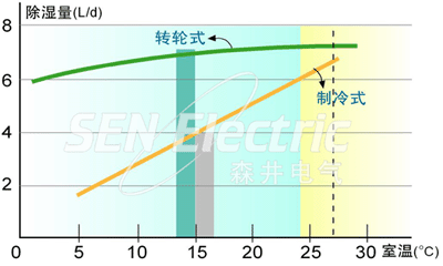 壓縮機式除濕機在低溫環境中除濕量會明顯減少 |